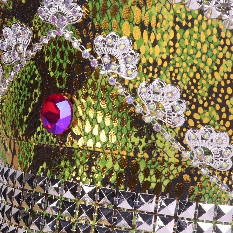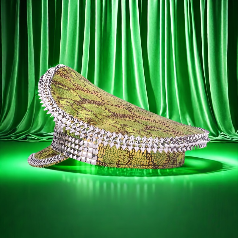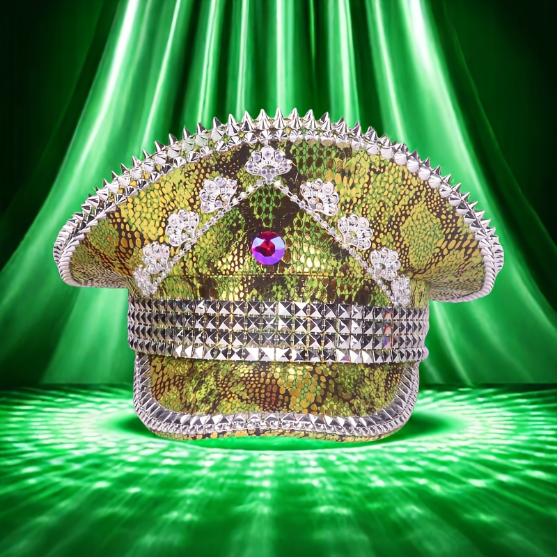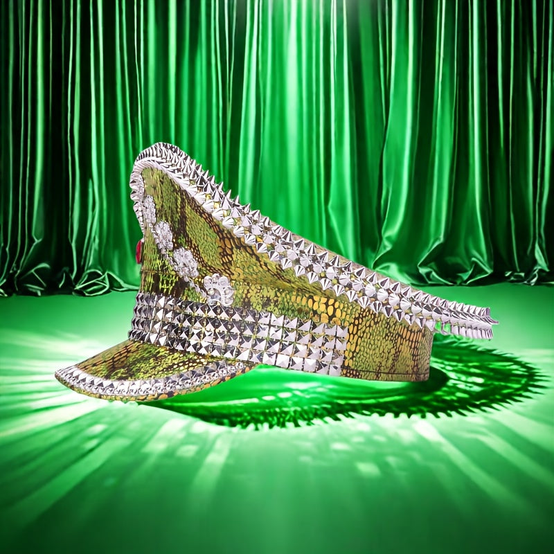 Spiked Military Hat for Parties & Festivals - Punk Disco Sailor Cap with Shiny Rhinestones, Lightweight Polyester, Hot Stamped Design, Ideal for Costume Performances, Comes in an Independent Thickened Cardboard Packaging