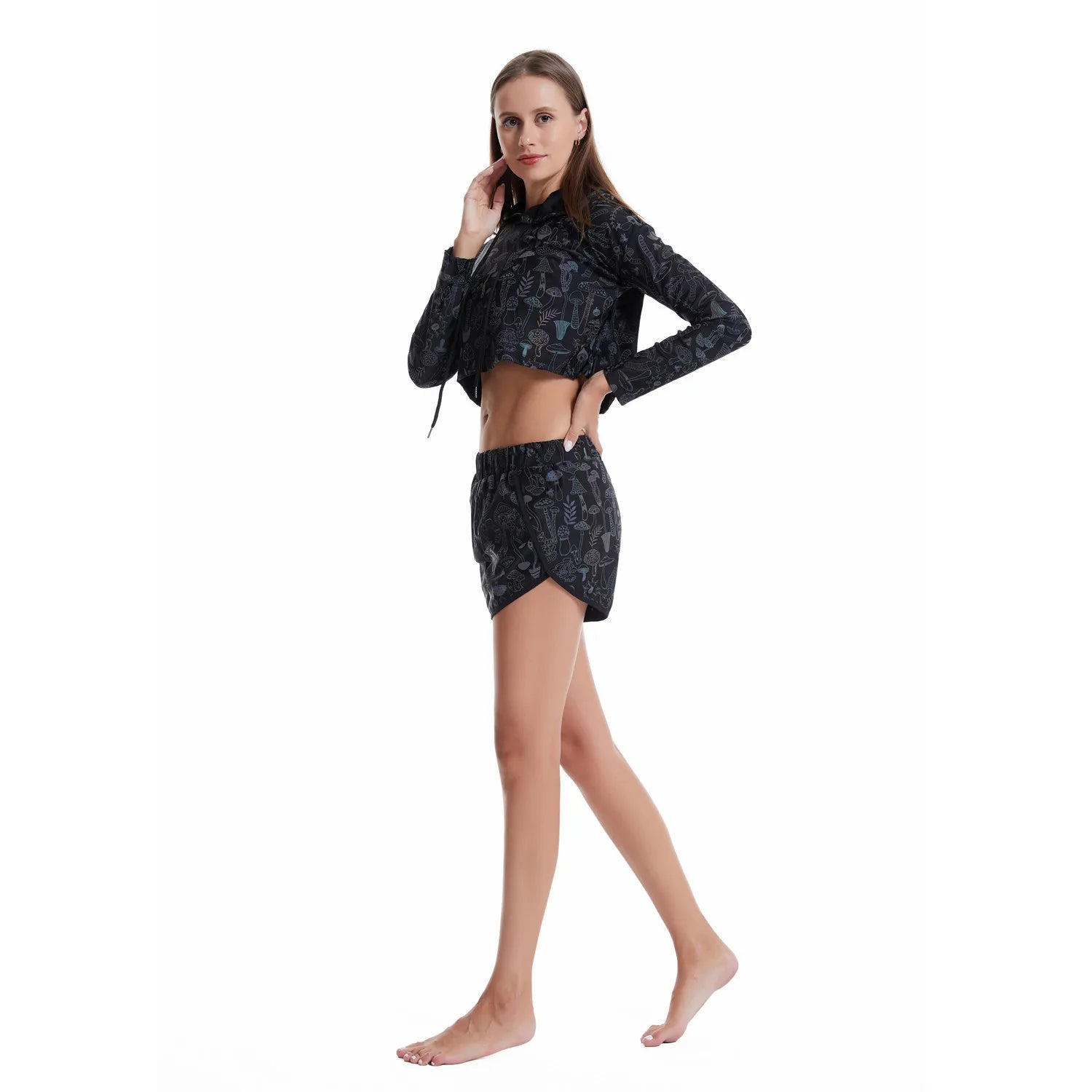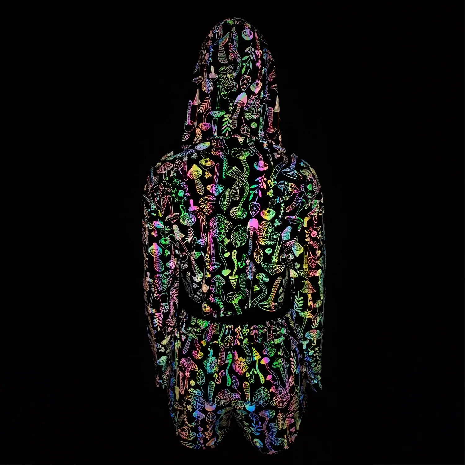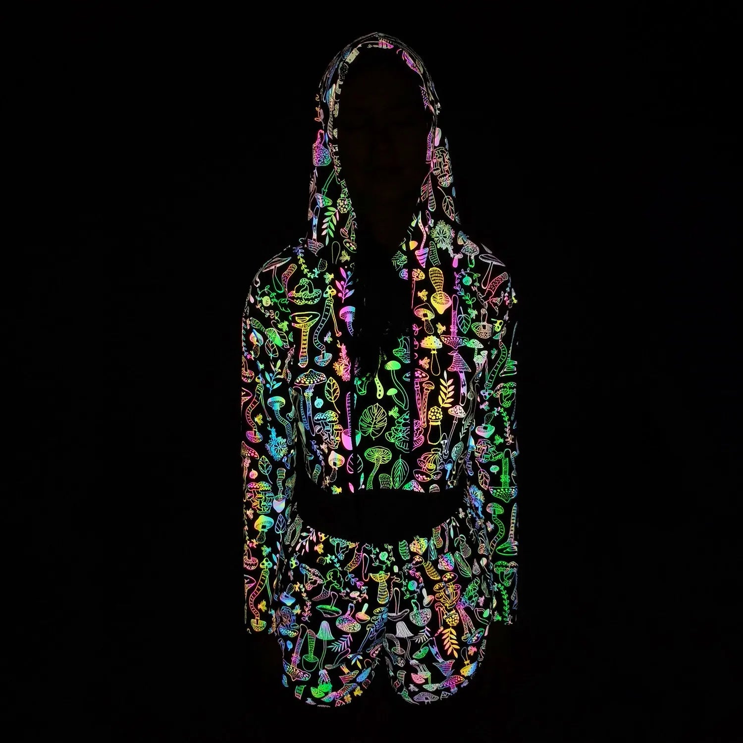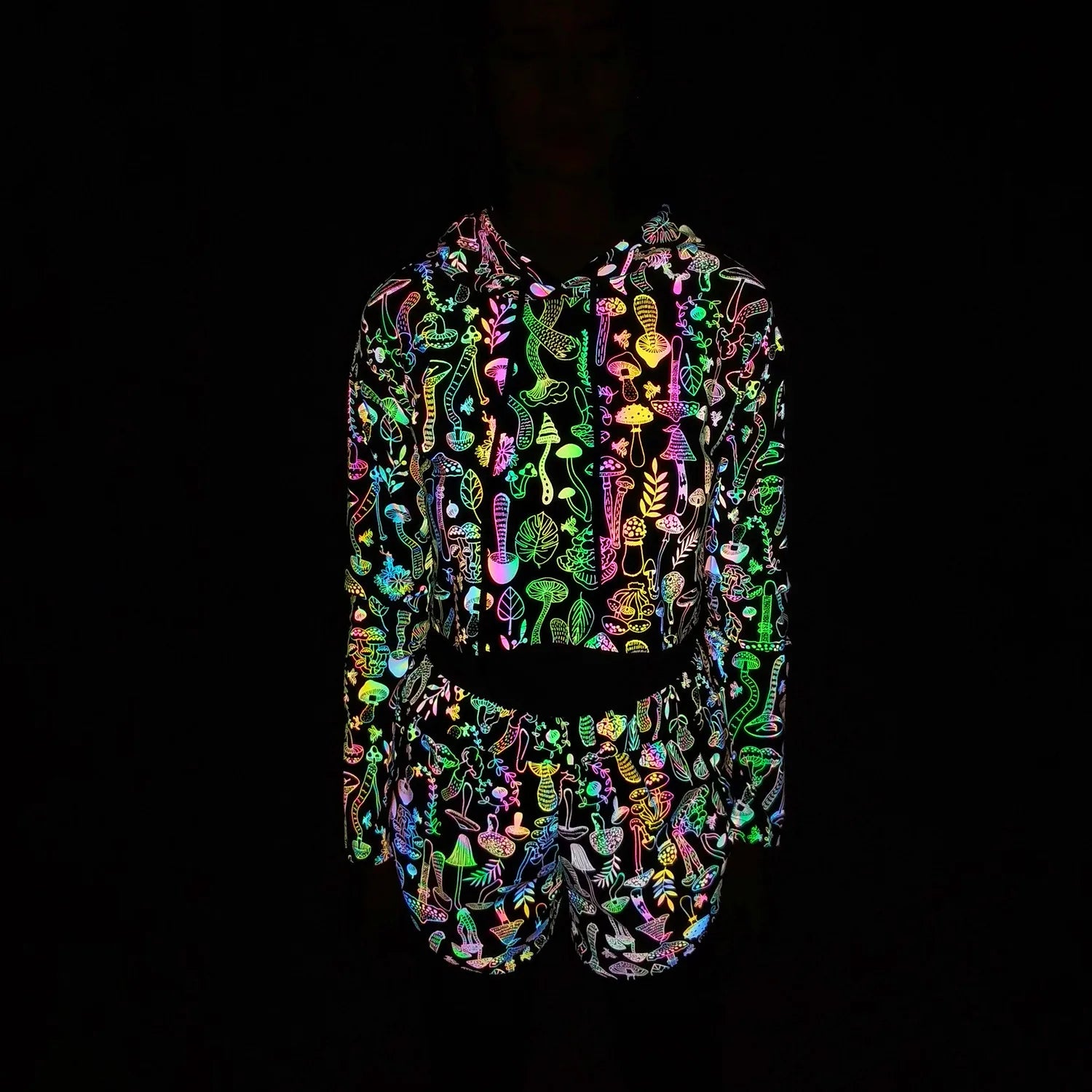 Spring Autumn Women Colorful Reflective Pullover Hoodies Y2K Harajuku Mushroom Printed Long Sleeve Crop Tops