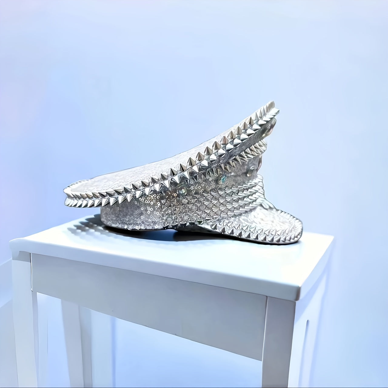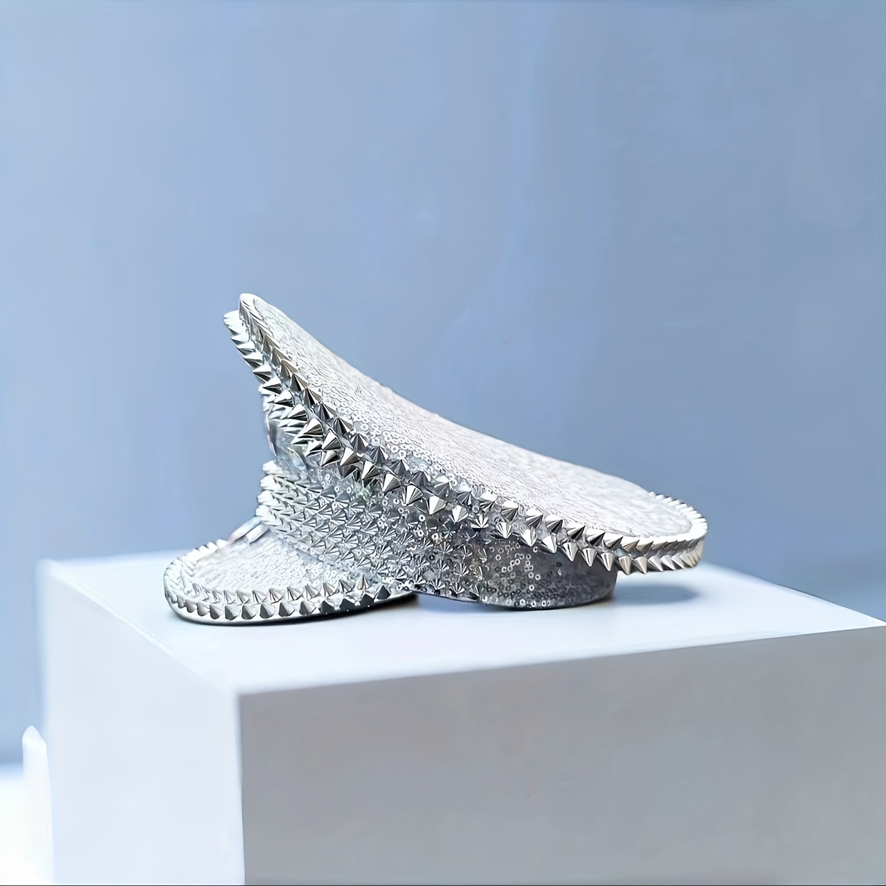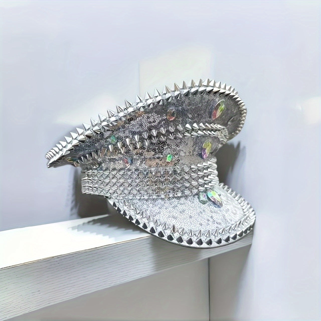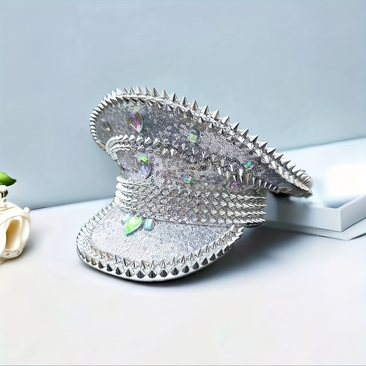 Steampunk Captain Hat with Glowing Rhinestones, Metal Studs & Sequins - Punk Festival Headwear for Adult Parties, Music Festivals, Cruise Events, Bars, Ladies' Nights & Costume Balls, Polyester Material, Hand Wash Only, Chris