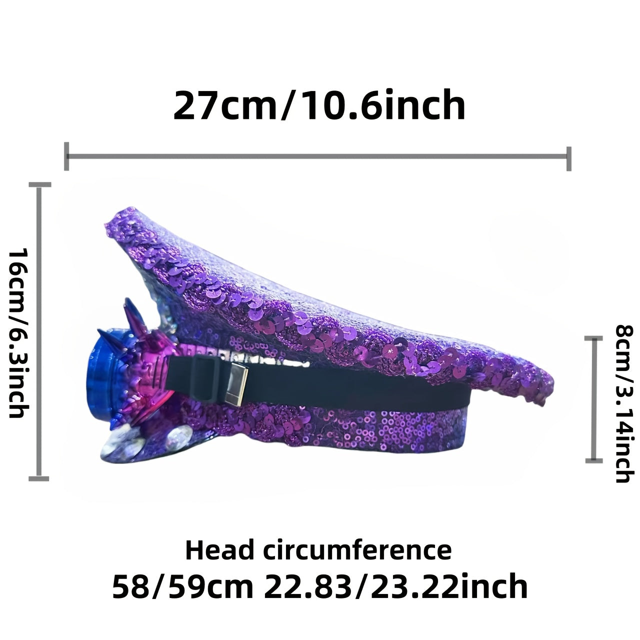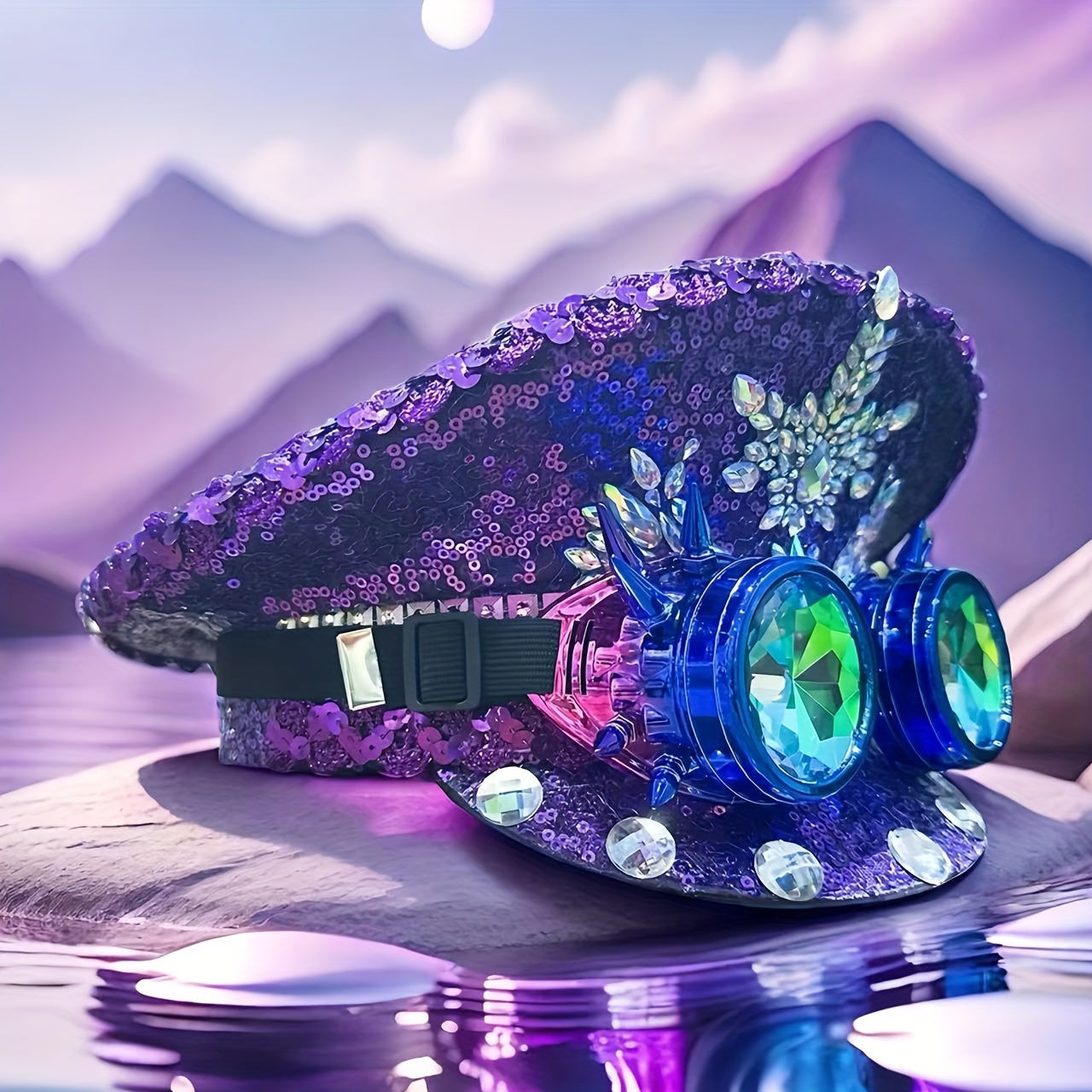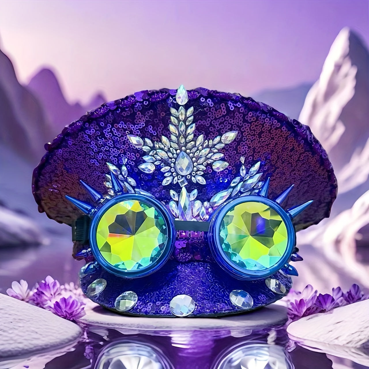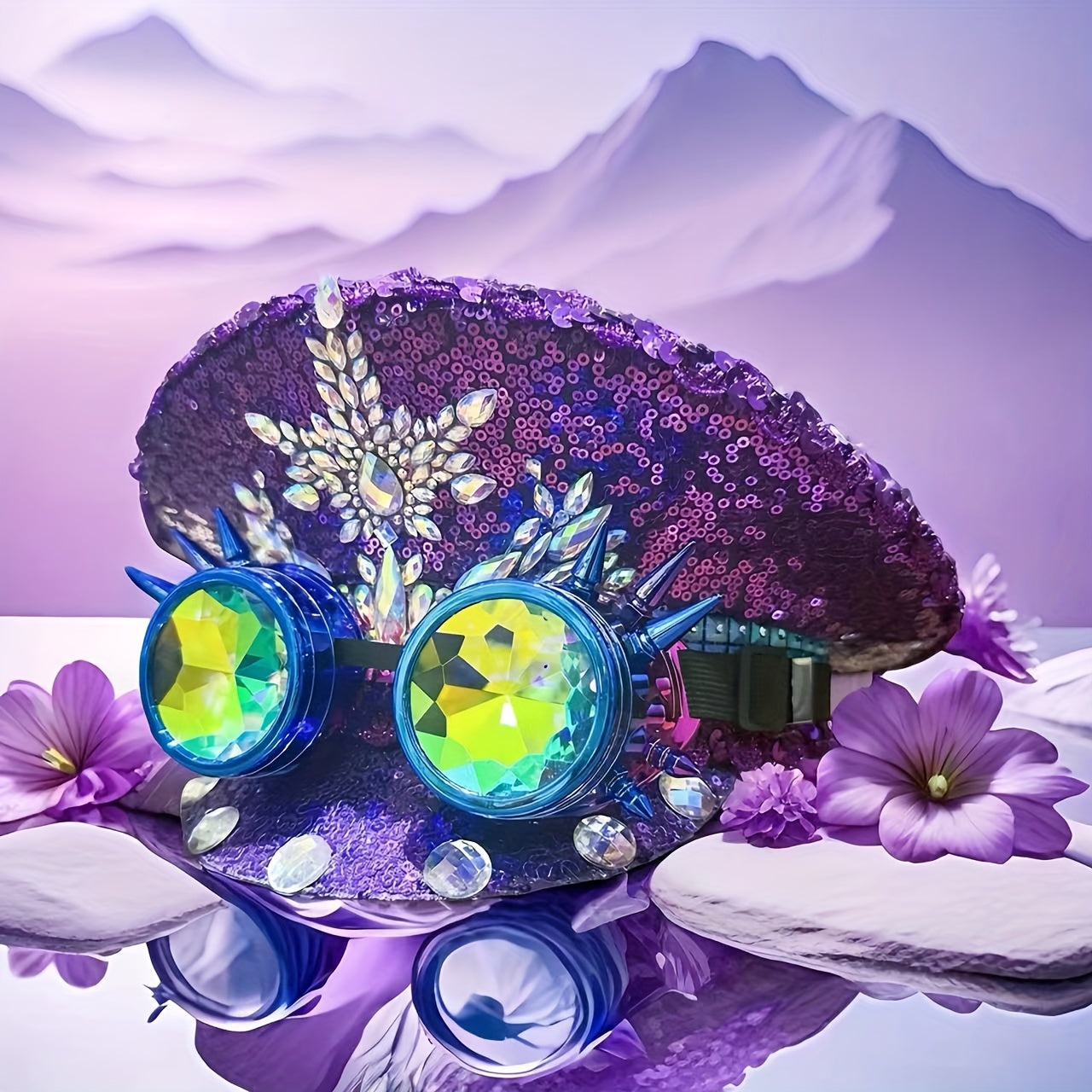 purple Steampunk Party Hat with Rivet Glasses & Rhinestones - Perfect for Carnivals, Music Festivals, Cruise Parties, Bars, Women's Gatherings, Singles Events, Halloween
