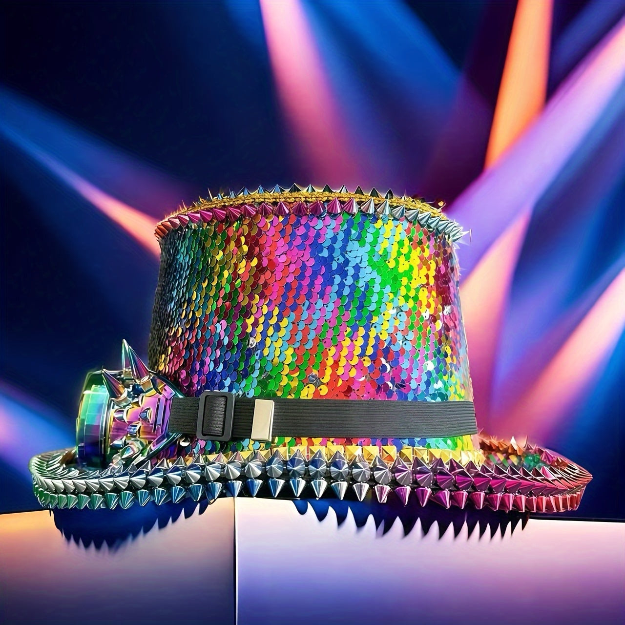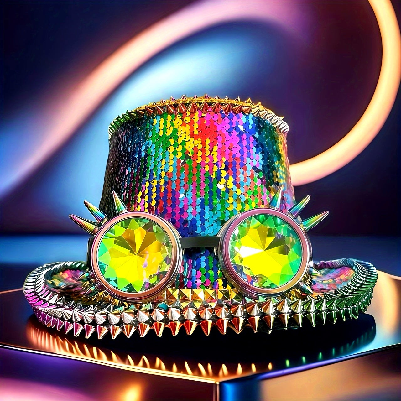 Steampunk Rainbow Top Hat with Goggles - Perfect for Carnivals, Music Festivals, Bars, Singles Parties & More, Festival Hat