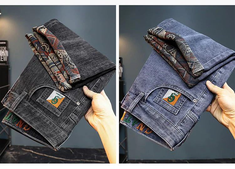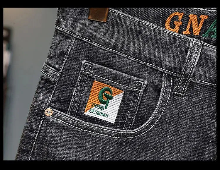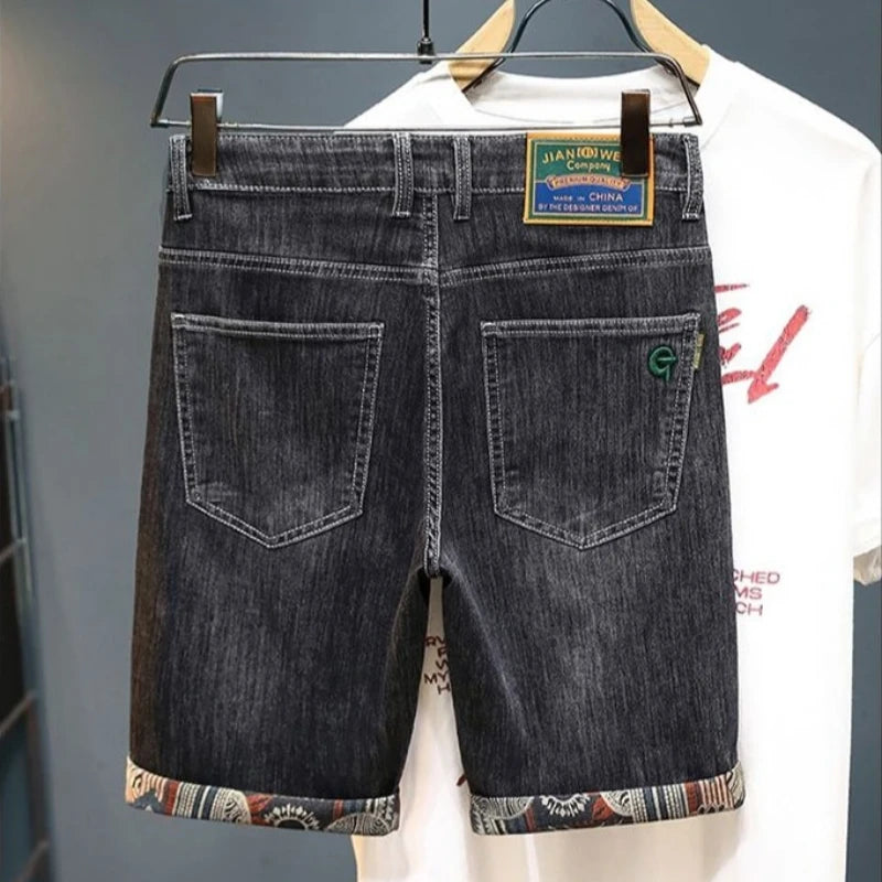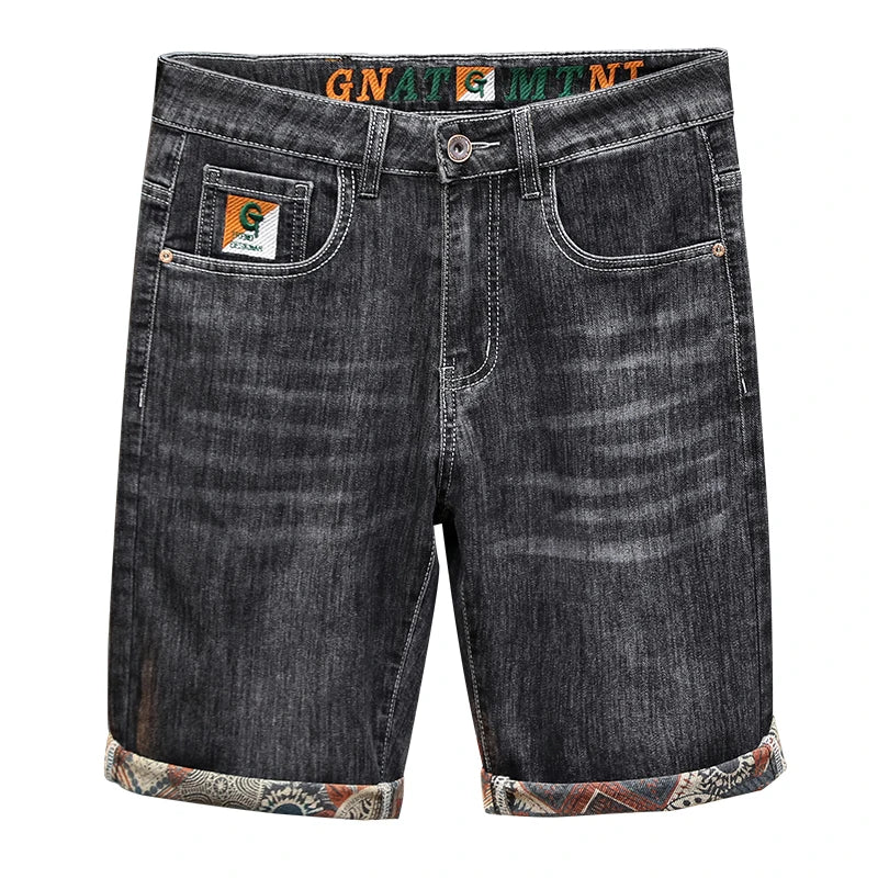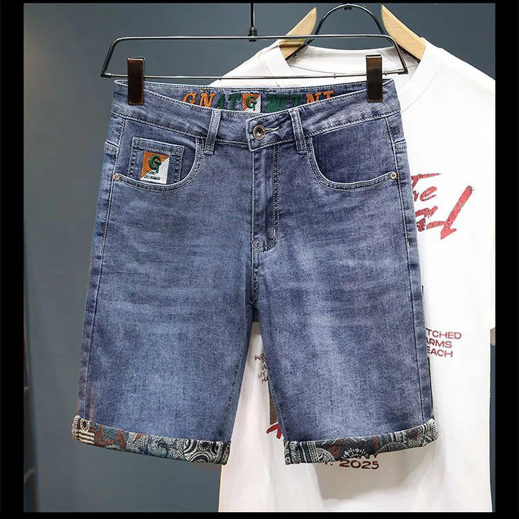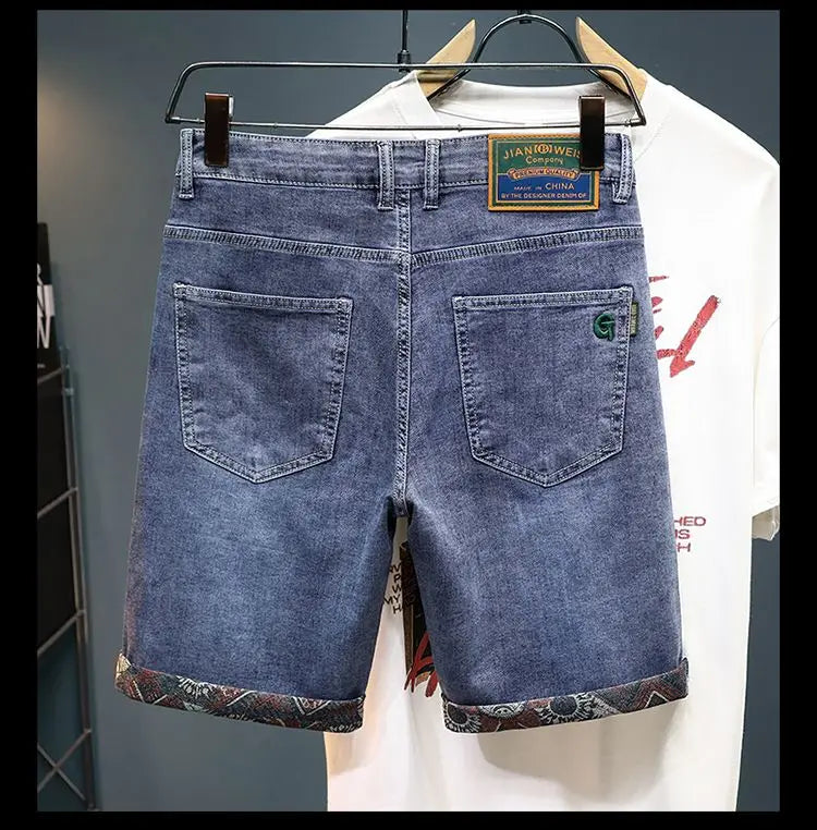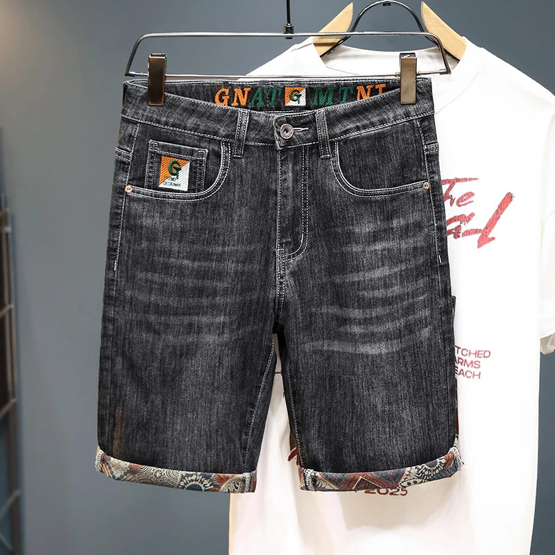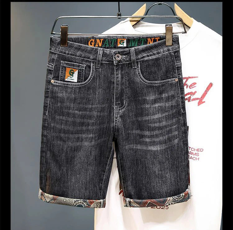 Summer Men's Embroidered Denim Shorts Straight Fashion Slim Personality Streetwear Jeans Luxury Bermuda Male Short Pants