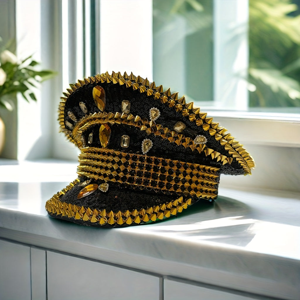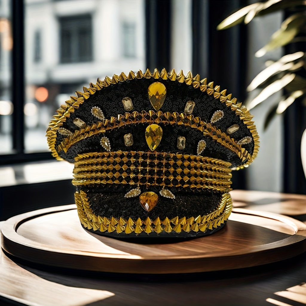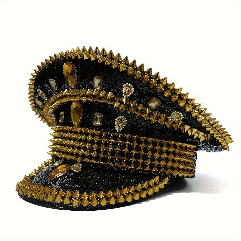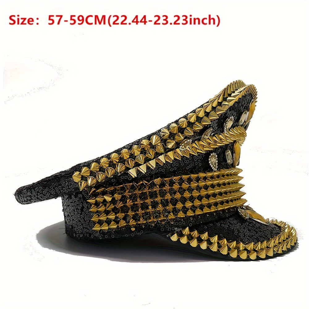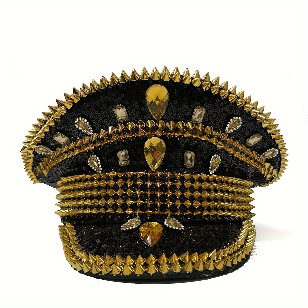 Unisex Punk Studded Navy Hat, Party Festive Hat, Nightclub Headgear, DJ Cap, Disco Naval Hat, Colorful Luxury Rhinestone, Dance Performance Costume Captain Hat