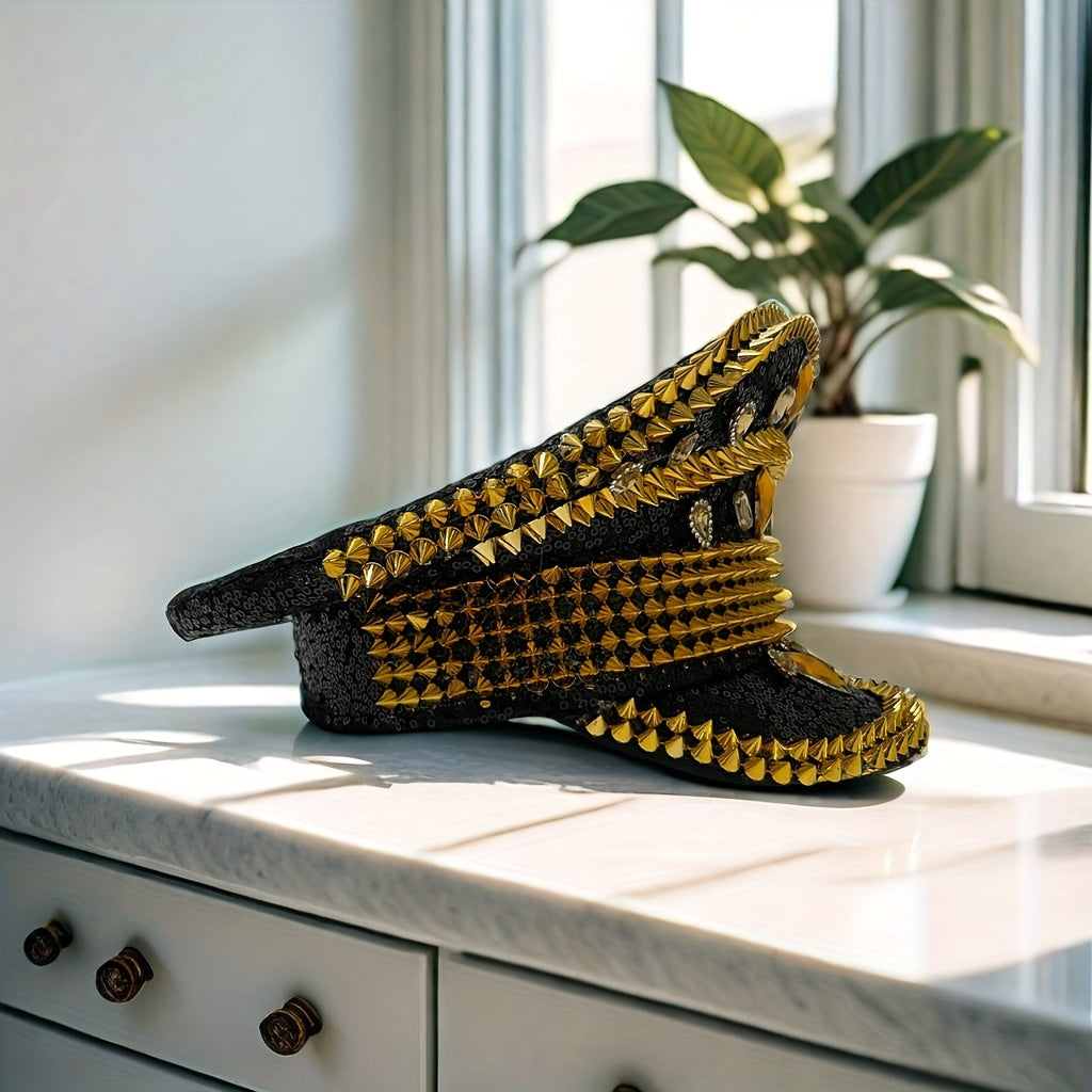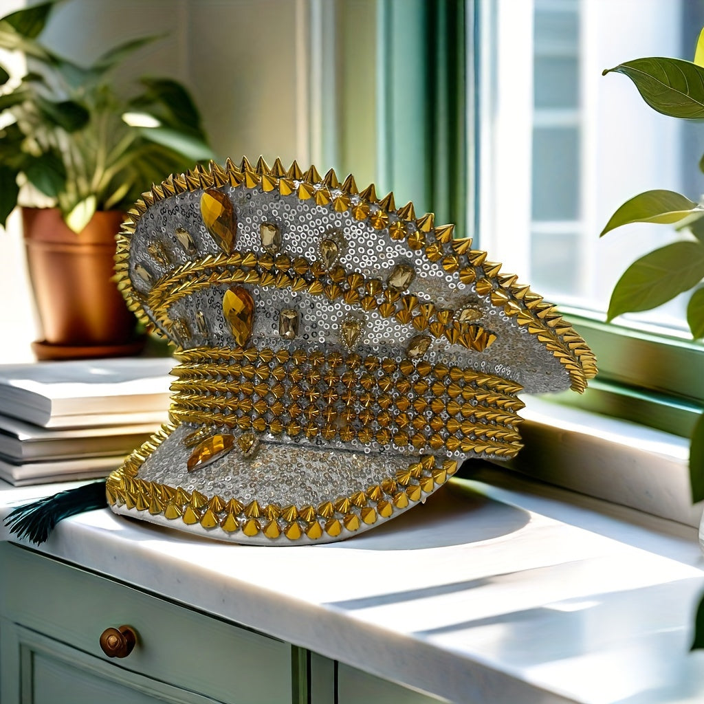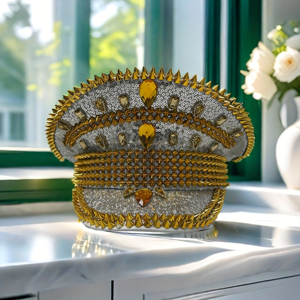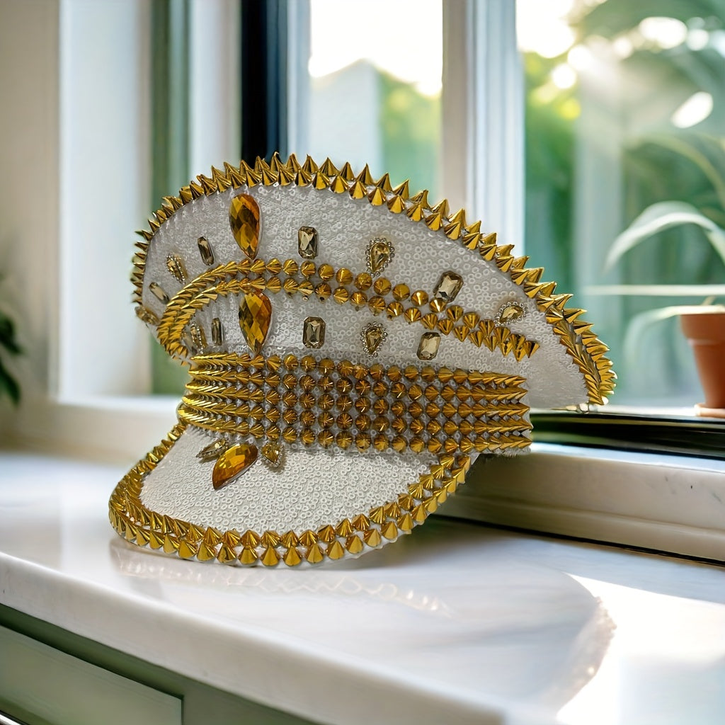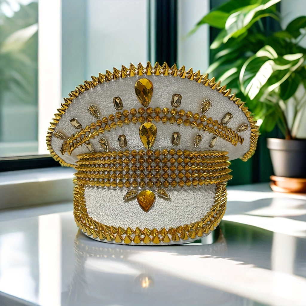Unisex Punk Studded Navy Hat, Party Festive Hat, Nightclub Headgear, DJ Cap, Disco Naval Hat, Colorful Luxury Rhinestone, Dance Performance Costume Captain Hat