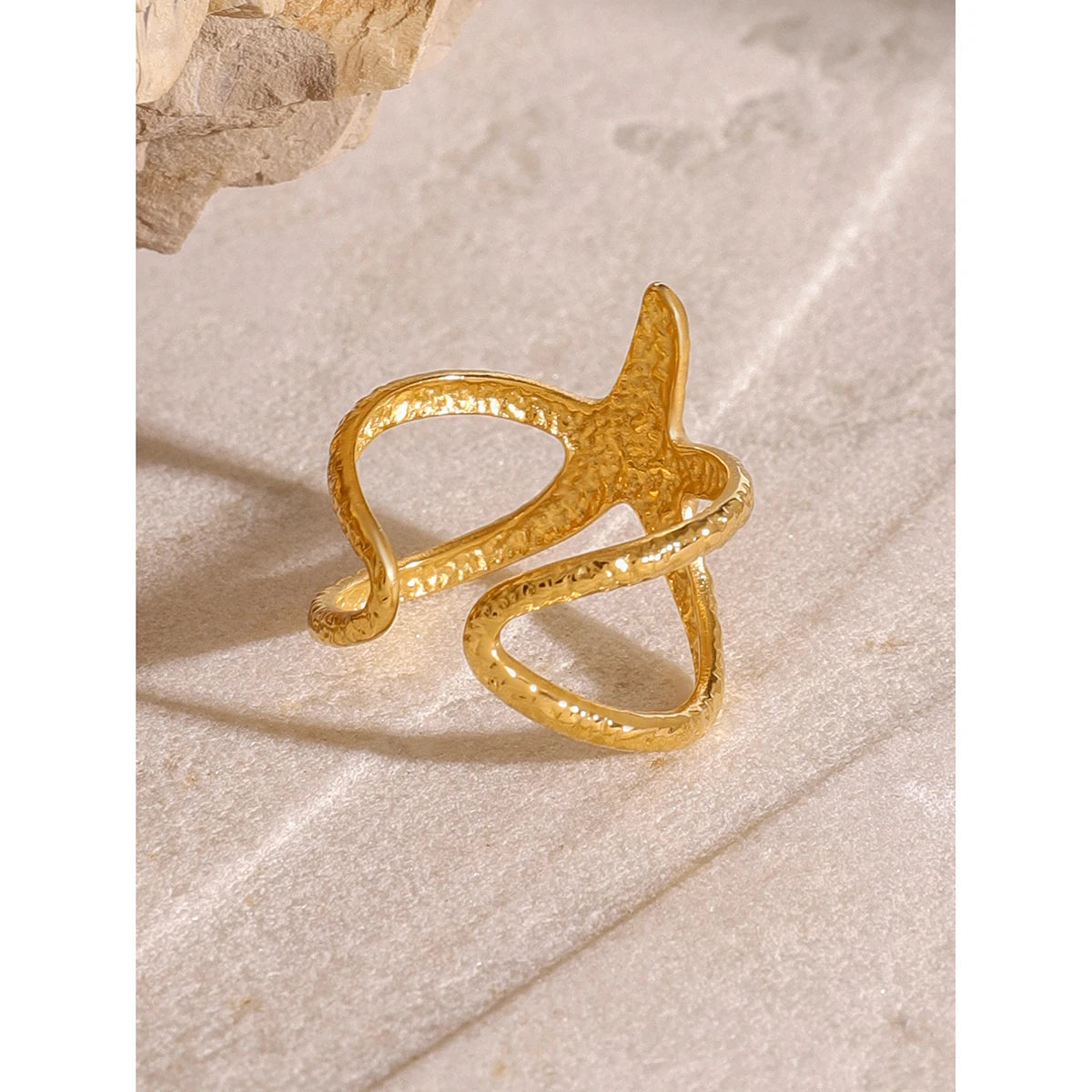 Stainless Steel Star Open Ring 18k gold plated