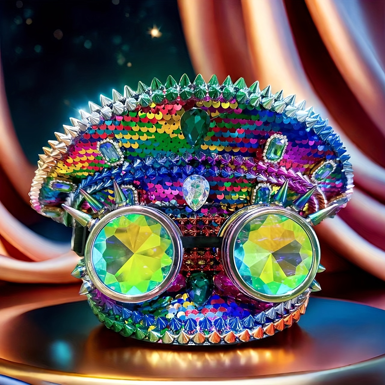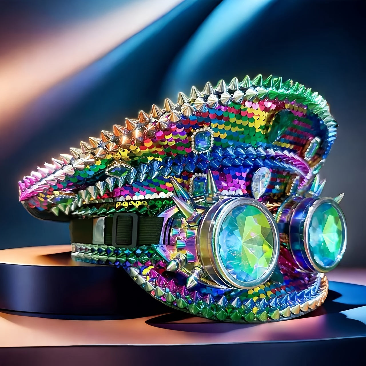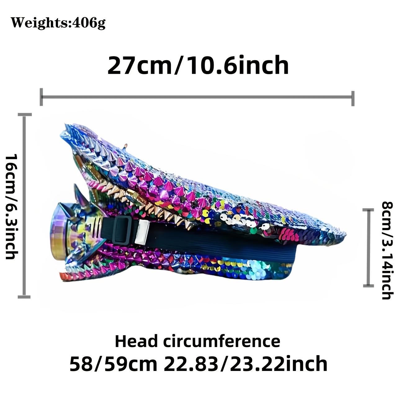 Vibrant Rivet Accents Captain-Style Party Hat with Glasses - Perfect for Halloween, Music Festivals, Bachelorette Parties & More, Hand Wash Only