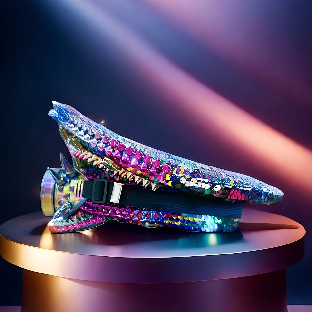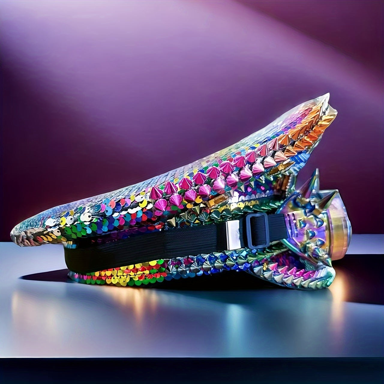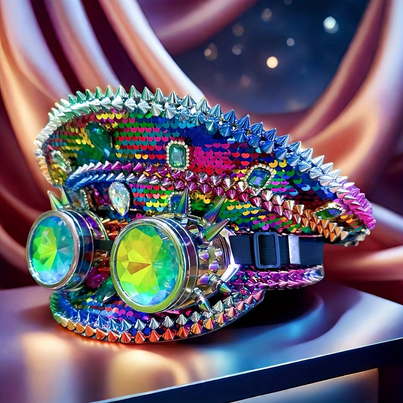 Vibrant Rivet Accents Captain-Style Party Hat with Glasses - Perfect for Halloween, Music Festivals, Bachelorette Parties & More, Hand Wash Only