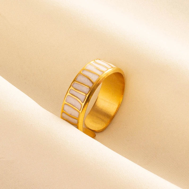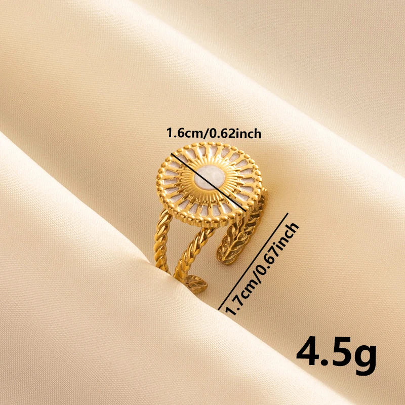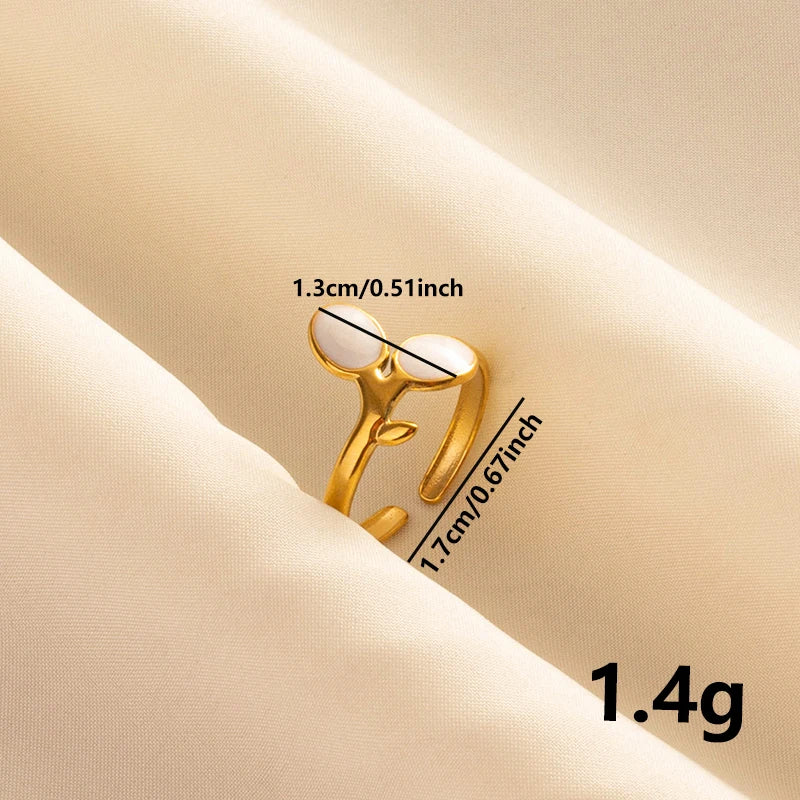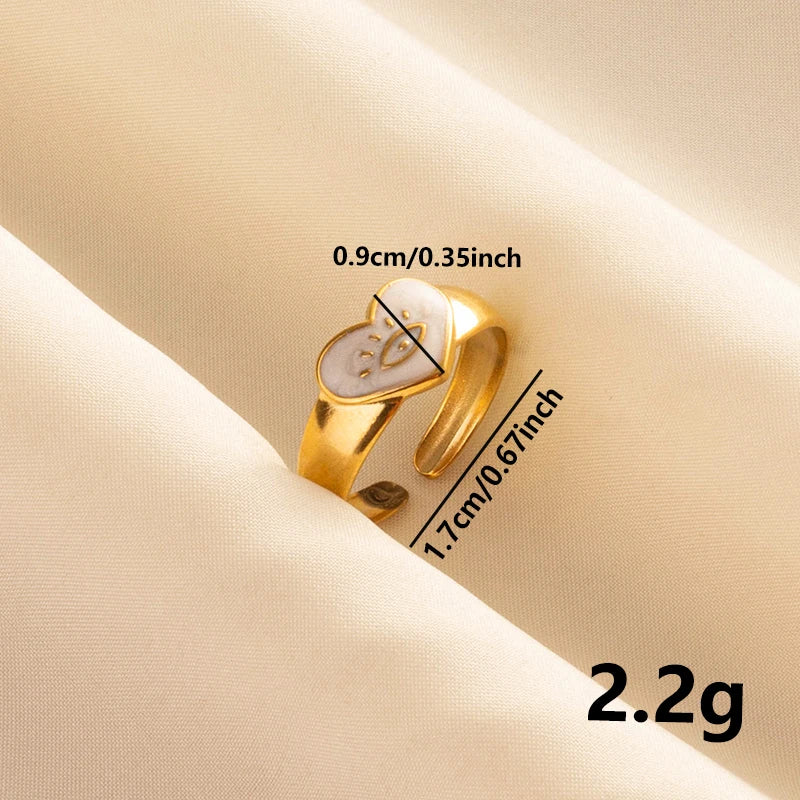White Drip Oil Real Gold Plated Star Heart Eye Ring Open Adjustable Vintage Stainless Steel Rings