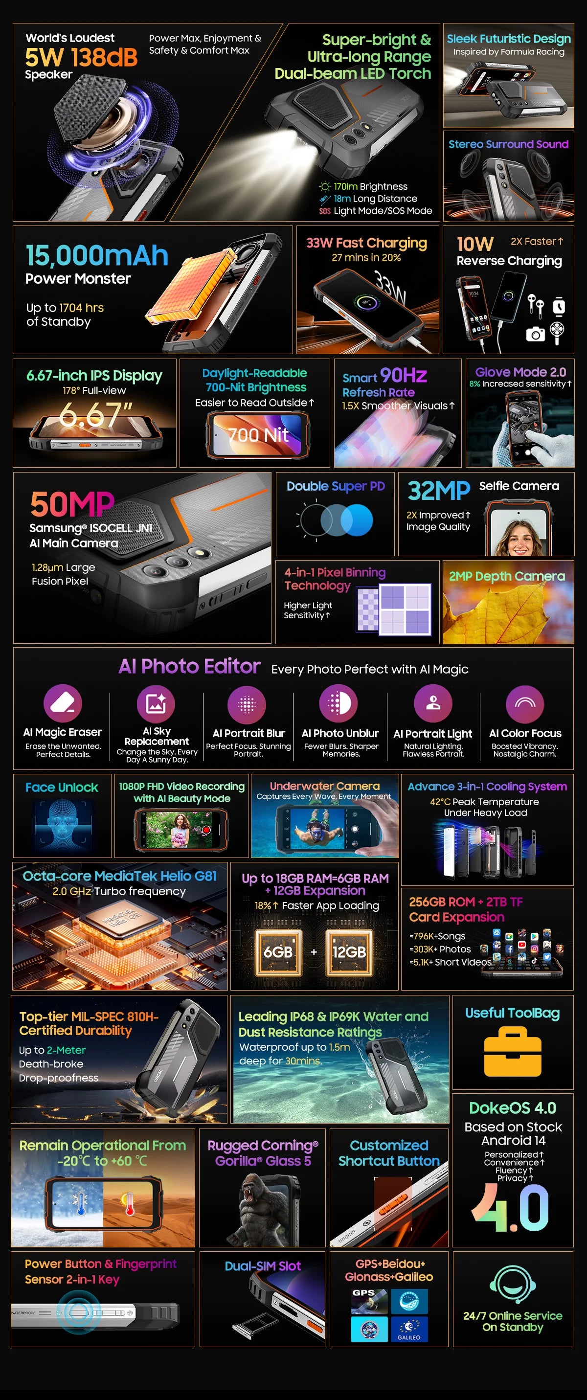 [World Premiere ]Blackview OSCAL PILOT 1 Rugged Phone, 6GB 256GB Smartphone, 6.67'' HD+Display Mobile Phone With 15000mAh, NFC