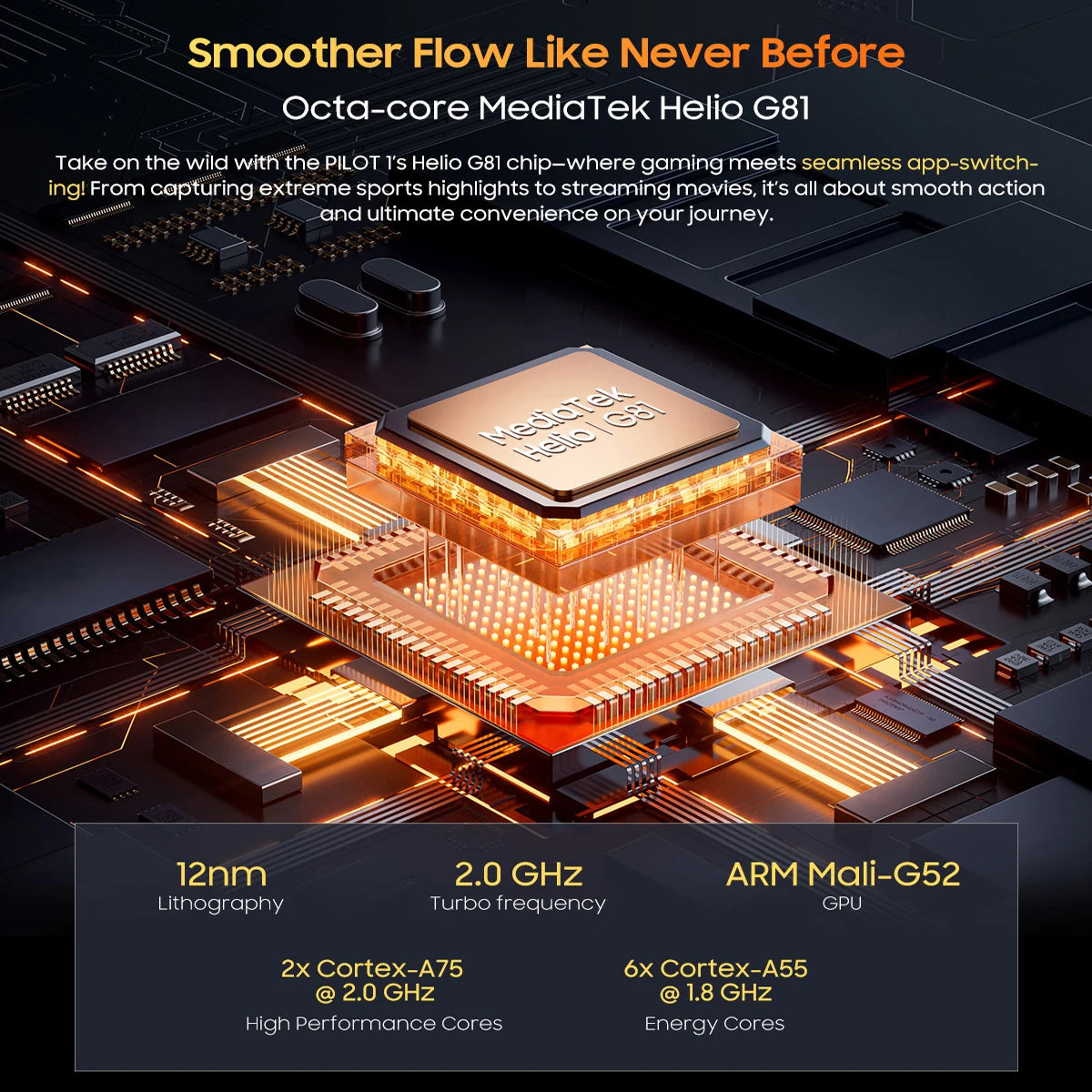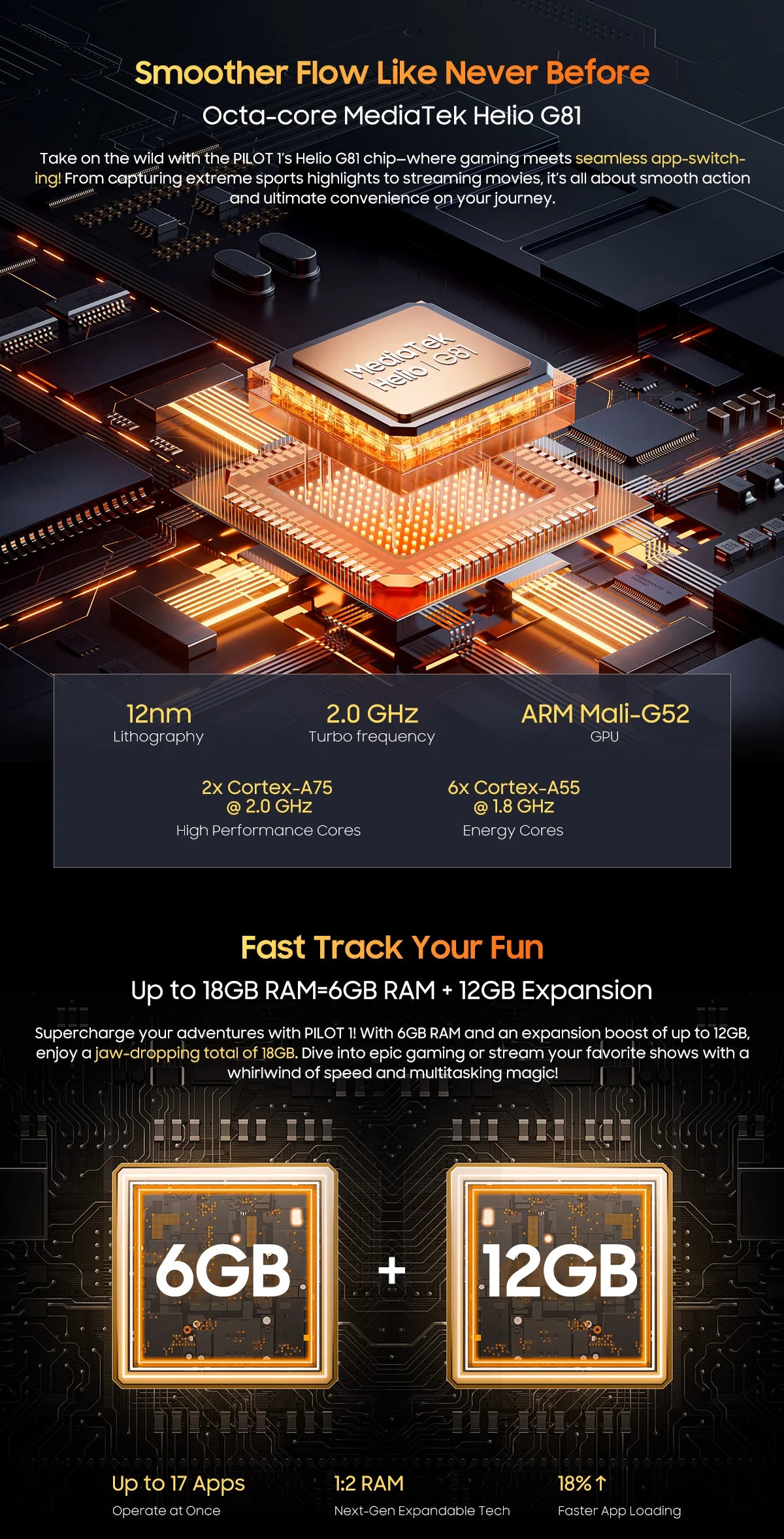 CPU : MTK Helio G81, Octa core, 2*A75@2.0GHz+6*A55@1.8GHz