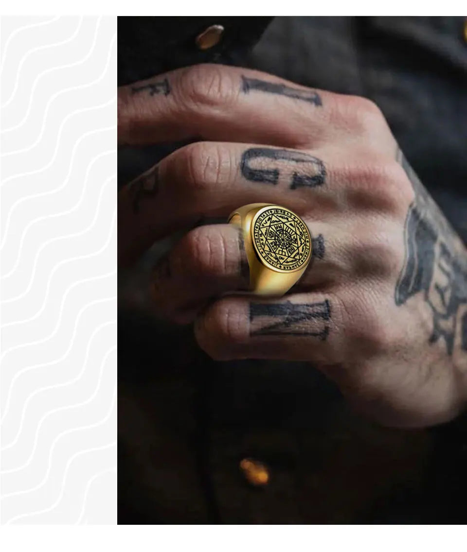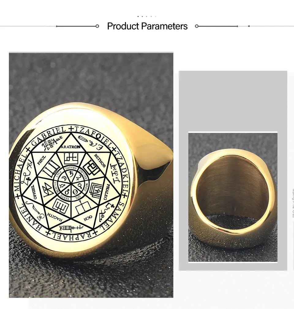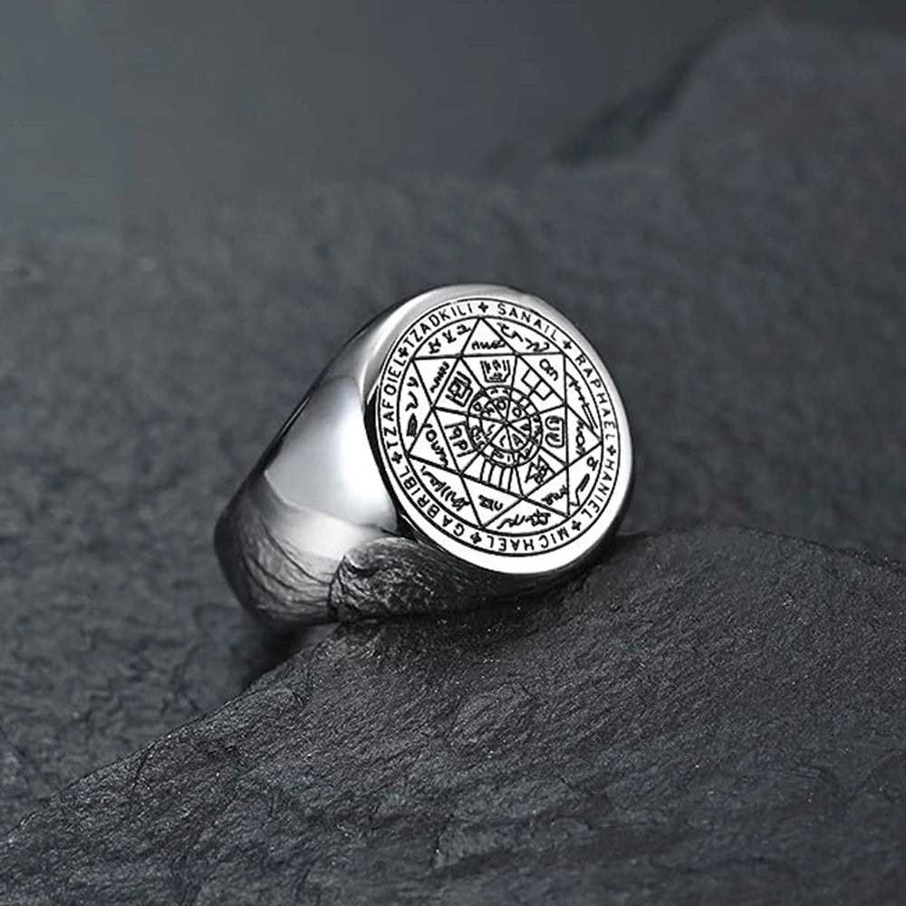 YILUOCD Seal of The Seven Archangels Rings for Men The Key of Solomon Ring Kabbalah Talisman Amulet Stainless Steel Male Jewelry
